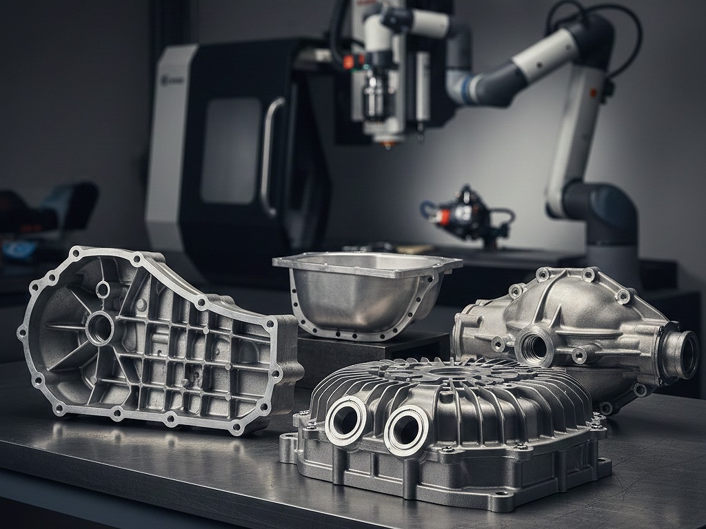 従来のガソリン車では鉄鋳物が主流だった部品も、現在ではアルミダイカストやアルミ砂型鋳物への置き換えが進んでいます。特に大型のハウジング類では、複数の部品を一体化して薄肉化を図る傾向が顕著です。これにより、加工現場には「薄肉・複雑形状」かつ「高い寸法精度」という、相反する要求が突きつけられています。